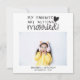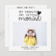 Bringen Sie Ihr Kind in Ihre Hochzeitsvorbereitung mit dieser lustigen und informellen Ankündigung und Save the Date Karte. Die Vorderseite der Karte ist leicht anpassbar mit einem Ihrer Lieblingsfotos Ihres Sohnes oder Ihrer Tochter, mit einem Familienfoto oder mit einem Foto Ihrer Wahl, und zeigt die Beschriftung "Meine Eltern heiraten" in modernen handgeschriebenen Schriftart, die mit einem schönen Herz dekoriert sind. Auf der Rückseite der Karte befindet sich ein zweites, individuell anpassbares Bild, das mit Ihrem Hochzeitstermin und Ihrem Ort personalisierbar ist.
