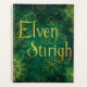 Golden elven script glows against a deep green backdrop, surrounded by mystical symbols and geometric sigils.