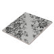 Verziertes und elegantes Design mit reich strukturierten schwarzen Blätter und geschliffenen Reben, die eine dimensionale Prägung digital auf silberem Hintergrund erhalten.