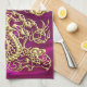 Embossed Gold Dragon Magenta Satin Print Geschirrtuch