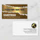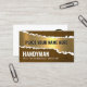 Die Abdeckung besteht aus einem texturierten Schälen aus Holz, um eine goldene Schicht aufzudecken. In der Goldschicht des Erfolgs ist Ihr angesehener Name. Um diesen geprägten Effekt zu erzeugen, tippen Sie bitte zweimal Ihren Namen. Die erste Namensschicht ist schwarz mit dem Schatten in einem Weiß-Schatten. In der Nähe der Basis befindet sich der Firmenname "HANDYMAN", den Sie neben den Kontaktdaten ändern können. Auf der Rückseite, in einem weißen Deckel, sind die Kartendetails auf der rechten Seite der Karte vorbei. Oben ist ein goldenes Hammer-Logo, gefolgt vom Firmennamen, den Kontaktdaten und der Slogan-Beschriftung. #handyman #constuctionhandyman #homerepairtrader #construction #builder #remodeling #handymantools #buildingtrage #homerepair #interiordesign #carpenter #zazzlemade