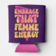 Bleibe erfrischend und mit dem **"Embrace That Femme Energy"** Getränk cooler! Mit fett formatierter Typografie feiert dieses Design die Kraft und Schönheit der weiblichen Energie. Ideal, um Ihre Getränke cool behalten, während Sie eine Aussage machen, ist es das ideale Accessoire für jeden, der Zuversicht und Stolz auf ihre Weiblichkeit ausstrahlt.