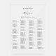 Diese einzigartige Acrylmütze ist perfekt für eine minimalistische Hochzeit. Das Design besticht durch eine moderne, undekorierte Typografie mit einem einzigartigen minimalistischen Stil. Dieses Zeichen kann benutzt werden, um Ihre Gäste alphabetisch oder durch Tischnummer zu organisieren, indem die Namen der Überschriften geändert werden. Dieses Hochzeitszeichen bietet Platz für bis zu 120 Gäste. Machen Sie Platz für mehr (oder weniger) Gäste, indem Sie auf die Schaltfläche "Anpassen" klicken und die Größe des Schriftartes verkleinern oder vergrößern. Neben der Platzierung jedes Gastes, personalisieren Sie dieses Schild mit den Namen des Paares.