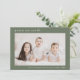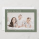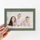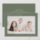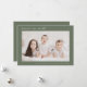EMELIA Green Family Foto Weltfrieden Weihnachtskarte. Personalisieren Sie die Kartenvorderseite mit einem Foto, Ihrem Familiennamen und dem Jahr. Personalisieren Sie den Rücken mit einem optionalen Urlaubsgruß oder Familiennachrichten und Ihrem Familiennamen.