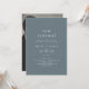Dieses minimalistisch-blaue Foto mit der Einladung zur Erneuerung der Emelia-Kollektion eignet sich hervorragend für eine moderne Feier zur Erneuerung des Geldes und zum Hochzeitstag. Das minimalistische Design zeichnet sich durch eine einfache, aber stilvolle Typografie auf Schieferblau-grau mit einer Atmosphäre moderner Eleganz aus.