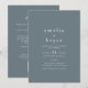 Dieser QR Code einfache boho Marine dunkelblauen Hochzeitseinladung aus der Emelia Collection ist perfekt für eine moderne Hochzeit. Das minimalistische Design zeichnet sich durch eine einfache, aber stilvolle Typografie auf Schieferblau-grau mit einer Atmosphäre moderner Eleganz aus. Rett Papier durch einen QR-Code für den Gast, um Details, UAWG oder beides anzuzeigen.
