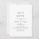 Diese weiße und schwarze rustikale Boho lasst uns Party Einladung Karte ist perfekt für jedes minimalistische Ereignis. Das Schwarz-Weiß-Design besticht durch eine moderne, undekorierte Typografie mit einem einzigartigen minimalistischen Stil.