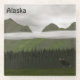 Ein "primitives" oder volkstümliches Gemälde aus grünem Nadelholz und Bergen an einem sehr grauen Tag mit niedrigen Hängewolken. Ein BullenElch (Alces alces) im Vordergrund verleiht der Szene eine Skala. Auch "Alaska" erscheint als anpassbarer Text.