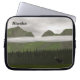 Ein digitales Bild von grünen Nadelbäumen und Bergen in Alaska an einem sehr grauen und bewölkten Tag. Ein BullenElch im Vordergrund verleiht der Szene eine Skala. Es erscheint auch das Textlesen "Alaska".