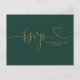 Eine einfache, elegante Goldene Herzschrift auf einer smaragdgrünen RSVP-Karte. Auf der Rückseite finden Sie Ihre Details und eine lustige Gesangsanfrage. Entwickelt von Thisisnotme©