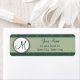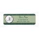 Ein nahtloses digitales Blumenmuster mit einem smaragdgrünen und hübschen aquamarinen Oberbild und einem Vintagen, aquamarinen und grünen Streifen-Bild im Satinstil am unteren Rand, mit einem Bändchen-Overlay mit einem anpassbaren Text-Siegel für Monogramm.