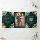 Emerald Cream Floral Gold QR Code Foto Hochzeit Dreifach Gefaltete Einladung