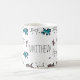 Smaragdbraune Hunde und Knochen im Graffiti-Stil mit Namen auf weißem Kreis. Design auf weißer Tasse. Sie können Text (Schriftart, Größe, Farbe und Position) und Hintergrundfarbe (hier weiß) einfach ändern, indem Sie auf die Schaltfläche Personalisieren oder anpassen klicken. Erhältlich in anderen Farben: lila und gelb, rot+gelb, türkis... Passende Produkte mit dem gleichen Muster: Babydecke, Lappen und vieles mehr. Vergiss nicht die ganze Sammlung.