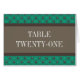 Die trendige und schicke Extravagante Lattice Tischnummer Card mit einem stilvollen Kreis und einem rautengedeckten Muster auf einem smaragdgrünen Hintergrund mit einem breiten, zweifarbigen, braunen Rahmen. Diese elegante Tischkarte eignet sich perfekt für eine moderne Hochzeit. Einfach anzupassen, fügen Sie einfach die passende Tischnummer(en) in das Textfeld ein. Klicken Sie auf "Anpassen", um weitere Personalisierungsoptionen zu erhalten.