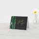 Der links Rand dieser eleganten, flachen Hochzeitsdankkarte zeichnet sich durch ein smaragdgrünes Aquarelldesign aus, das mit vergoldetem Imitat-Glitzer besticht. Der Text ist in goldfarbenem Skript und singt serifenlose Schriftart auf dunkelschiefer schwarzer Hintergrundfarbe.