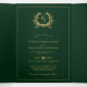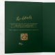 Das Herzstück dieses romantischen, glamourösen Hochzeitsdesigns ist das klassische traditionelle Monogramm . Es zeigt die Initialen des Paares, umgeben von einem Wappen aus grünen Botanikalen und Ästen, sowie ein Foto, das der Karte Eleganz und Schönheit verleiht - alles in smaragdgrünen und goldfarbenen Tönen. Personalisieren Sie Ihre Event- und UAWG-Daten einfach mit dem QR-Code, der Ihre Gäste direkt auf Ihre Website leitet.