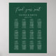 Klassische Kalligrafie Script Hochzeitssitzplan finden Sie Ihren Platz. Personalisierte, dunkelgrüne Sitzkarte für 120 Gäste (12 Tische). Klicken Sie einfach auf den Link, um den Text anzupassen, der unter dem Bereich für die Textpersonalisierung rechts angezeigt wird, und wählen Sie Ihren eigenen Farbhintergrund aus. Dieses Schild Poster-Template macht es einfach und schnell, atemberaubende Ergänzungen Ihrer Hochzeitsdekoration zu schaffen. Die Zeichen können vergrößert werden, es gibt viele Größen zur Auswahl, sowie Optionen für die individuelle Gestaltung und Anpassung.