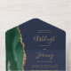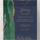 Emerald Green Agate Gold Navy Blue QR Code Wedding All In One Einladung