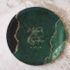 Emerald Green Agate Gold Script Wedding Pappteller