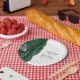 Diese eleganten, modernen Hochzeitsfeier-Teller zeichnen sich durch ein smaragdgrünes Aquarelldesign aus, das mit Imitaten mit goldenem Glitzer besticht. Passen Sie den grünen Text einfach auf einem weißen Hintergrund an, mit den Namen der Braut und des Bräutigams in handschriftlicher Kalligraphie über einen großen Ampersand.