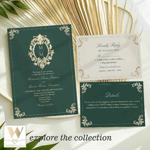 Emerald Green Baroque Wedding Invitation SuiteDesignt von Yana Bor