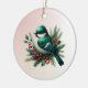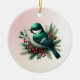 Genießen Sie den Baum mit einem hübschen Ornament, das Smaragdgrüne Vögel und Grünbäume mit roten Beeren und Pinecones hervorgehoben zeigt. Diese naturlich inspirierte Dekoration fügt Ihrer Feriendekoration eine elegante Touch hinzu. Der Hintergrund der Vorderseite kann beliebig verändert werden.