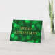 Klassische Urlaubskarte mit den Worten "Frohe Weihnachten" in den Imitaten goldene Folie vor einem smaragdgrünen Bokkeh-Lichteffekt, der perfekt für den Versand von Urlaubspensionen an Familie, Freunde oder Geschäftskunden ist. Um Text in der Karte hinzuzufügen, klicken Sie auf die Schaltfläche "Anpassen". *Bitte beachten Sie, dass das Zazzle-Wasserzeichen, das in der Zoomvorschau angezeigt wird, NICHT auf dem gedruckten Endprodukt erscheint. © Rosewood and Citrus