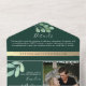 Diese Natur inspiriert Hochzeitseinladung in smaragdgrünen verbindet Eleganz mit modernem rustikalem Charme. Das mit goldenen Akzenten, Eukalyptusblättern in Aquarellfarbe und üppiger Vegetation geschmückte Hotel verfügt über eine persönliche Touch mit einem Foto des Paares. Einfach mit Ihrem Foto, Ihren Hochzeitsdetails und UAWG-Informationen für ein atemberaubendes, einheitliches Erscheinungsbild anpassen.
