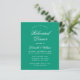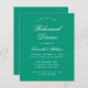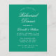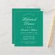 Eine einfache Probe-Dinner-Einladung mit einer modernen Farbe: smaragdgrün. Es hat nur weißen Text auf smaragdgrünen Hintergrund. Die Wörter "Probe Dinner" und der Name sind in einem eleganten Kalligraphieskript geschrieben.