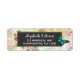 Adressetiketten mit elegantem, grünem Schmetterling. Ein schwarzer Rahmen mit einem goldenen Rahmen überlagert ein Vintages Collage-Muster mit farbigen rosa Rosen und grünen goldenen Blätter mit einem schillernden, altmodischen Look.