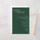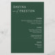 Modernes, minimales Hochzeitsmenü mit akzentuierter Drehung in elegantem serf fett Schriftart mit "und" in modernen handgeschriebenen Schriftzeichen auf einem trendigen smaragdgrünen Hintergrund. Persönlich gestalten Sie Ihr Hochzeitsessen mit den Details unten. Die Vorlage stellt 3 Überschriften und 3 Leerzeichen für benutzerdefinierten Text bereit. Benötigen Sie weitere Optionen? Bitte kontaktieren Sie mich, ohne zusätzliche Kosten! Diese Speisekarte kann für Hochzeitsfeiern, Proben oder jede Veranstaltung verwendet werden.