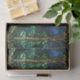 Elegantes smaragdgrünes Imitat aus Buntglas mit Goldakzenten mit blauem und grünem Hintergrund