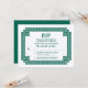 Smaragdgrüne keltische Knotenrahmen und geklatschte Hochzeit RSVP Karte. Diese Einladung enthält eine keltische Knotengrenze in smaragdgrün. Der Hintergrund ist weiß auf der Vorderseite und smaragdgrün auf der Rückseite. Alle Formulierungen können personalisiert sein, wie Sie gewollt haben.