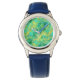 Kinderuhr aus Edelstahl mit blauem Lederarmband