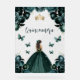 Dieses hübsche Begrüßungsschild aus Quinceñera besticht durch smaragdgrüne Rose auf einem transparenten Hintergrund, der mit goldenen Imitaten Glitzer bestreut ist. Eine goldene Tiara, ein brünettes Mädchen in einem smaragdgrünen Prinzessenkleid und kleine grüne Schmetterlinge schmücken den Text. Das Wort "Quinceañera" erscheint in elegantem smaragdgrünen Schrift. Personalisieren Sie es mit dem Namen des Ehrengast und dem Datum in goldfarbenen Sans Serif Schriftart.