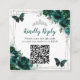 Emerald Green Floral Silver Quinceañera QR Code Begleitkarte