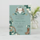 Elegantes rustikales Design mit Charro/Cowboy/Ranch Thema. Mit einem schönen Wappen, luxuriösen smaragdgrünen und weißen Blumen und hübschen Cowgirl/Cowboy Stiefel