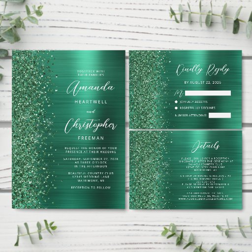 Glam Brushed Metal Glitter Emerald Green WeddingDesignt von Akhates Designs