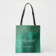 This elegant modern bridesmaid tote bag features an emerald green faux glitter border. Add her name in white handwriting script and the word "bridesmaid" or other title in sans serif font on an emerald green faux brushed metal background.