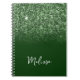 Erstellen Sie Ihr eigenes personalisiertes Notebook. Emerald Glitzer Ober Overlay auf einem soliden Hintergrund. Passen Sie den dunkelgrünen Hintergrund Ihrer Lieblingsfarbe an. Ändern Sie den modernen Stil der Handschrift Schriftart für ihren Namen. Der Glitzer ist eine digitale Kunst, die wie ein Foto auf Ihrem Geschenk druckt.