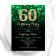 60. Geburtstagsfeier Einladung. Elegantes smaragdgrün und schwarz Design mit Imitaten Glitzer Gold. Mit stilvollen Diamanten, Bokeh-Leuchten und Skript-Schriftart. Männer oder Frauen laden ein. Ideal für eine stilvolle Geburtstagsparty. Personalisieren Sie Ihre persönlichen Daten. Nachricht, wenn Sie weitere Anpassungen benötigen. Gedruckte Zazzle Einladungen oder Sofortdownload digitalen druckbaren Vorlage.