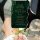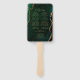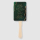 Dieser elegante, moderne Hochzeitsfan besticht durch einen smaragdgrünen, agate Hintergrund mit vergoldetem Imitat-Glitzer. Der Text erscheint in goldfarbenen Handschriften und Schriftart mit Copperplate.