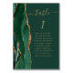 Der links Rand dieser eleganten, modernen Hochzeitskarte mit einer smaragdgrünen Aquarellgrenze, die mit Imitaten mit goldenem Glitzer bestickt ist, zeichnet sich durch einen smaragdgrünen Aquarell aus. Das Wort "Tabelle" erscheint in goldfarbenem Schriftzeichen auf grünem Hintergrund. Fügen Sie die Namen Ihrer Gäste hinzu, die jeder Tabelle zugeordnet sind.