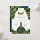 Emerald Green & Gold Floral Elegantes Quinceñera Einladung