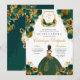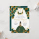 Emerald Green & Gold Floral Elegantes Quinceñera Einladung