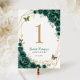 Emerald Green Gold Floral Quinceanera Tischnummer