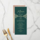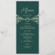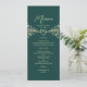 Elegante smaragdgrüne und goldene Hochzeitskarte mit zarten Blumendetails und romantischem Seilherz-Design. Ideal für formelle Empfänge, Herbst- oder Winterhochzeiten und anspruchsvolle Abendessen. Personalisieren Sie Ihre Namen, das Datum und die Menüauswahl, um eine einzigartige Touch für Ihren besonderen Tag zu erstellen. Koordiniert wunderschön mit den passenden Smaragd und Gold Hochzeitseinladungen, Schildern und Schreibwaren aus derselben Sammlung.