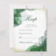 Ensure a smooth guest count with this chic Emerald Green and Gold RSVP Card. The clean white background features elegant alcohol ink marble textures in deep green and shimmering gold glitter along the border, perfectly complementing the main wedding invitation suite. This design is sophisticated and easy for guests to complete, making your wedding planning simpler. Ideal for a glamorous, high-end wedding theme.