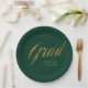 Dekorieren Sie Ihren Abschluss-Event mit diesen eleganten, minimalistischen smaragdgrünen und vergoldeten Grad-Kalligraphie-Papier-Tellern.