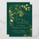 Emerald Green & Gold Modern Floral Save the Date Folieneinladung